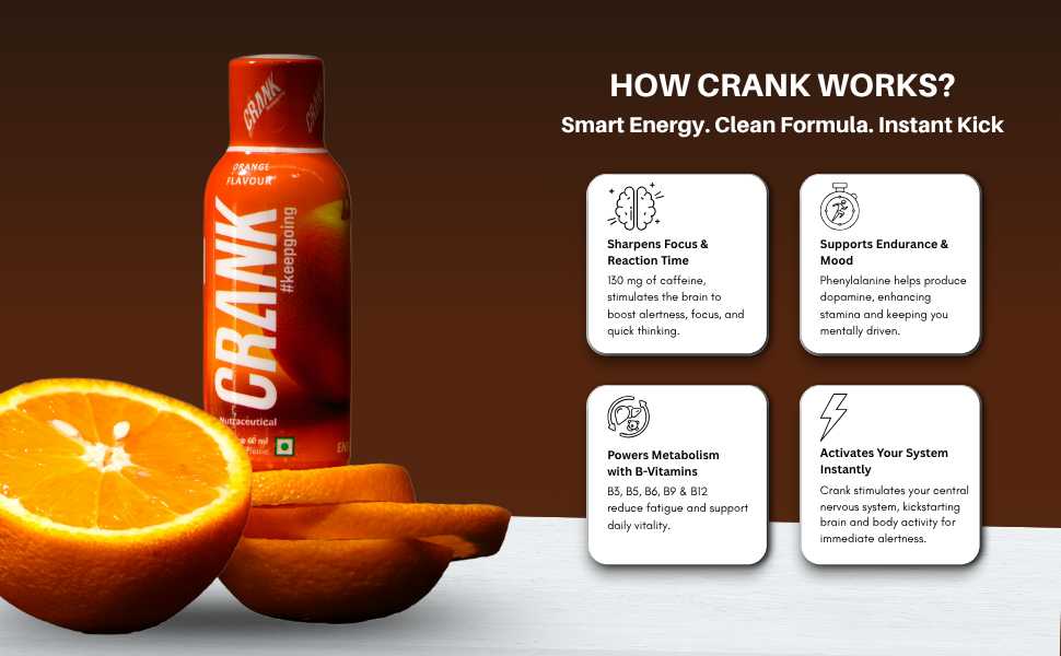 Crank Energy Shot – Orange Flavour, Pack of 12 (60ml each)