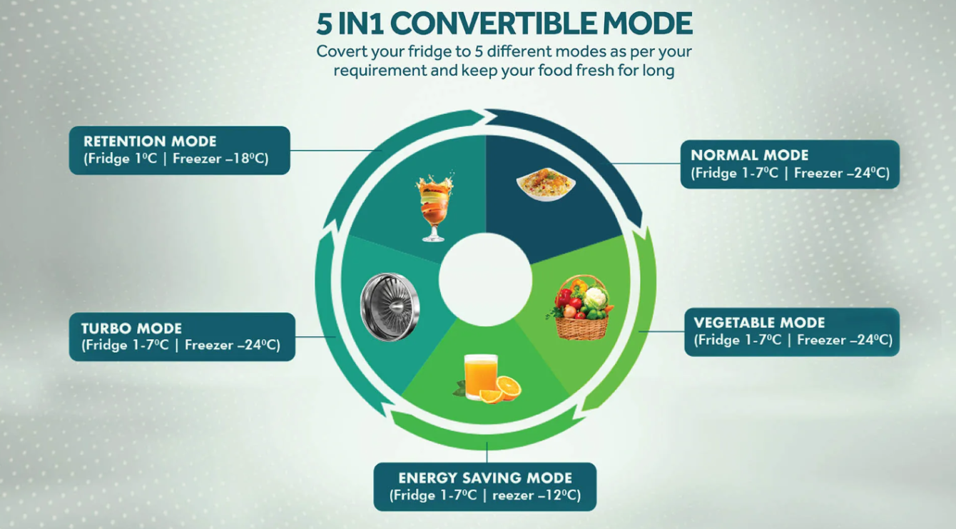 - 5-in-1 Convertible Mode: Includes Normal, Turbo, Energy Saving, Retention and Vegetable modes for versatile cooling